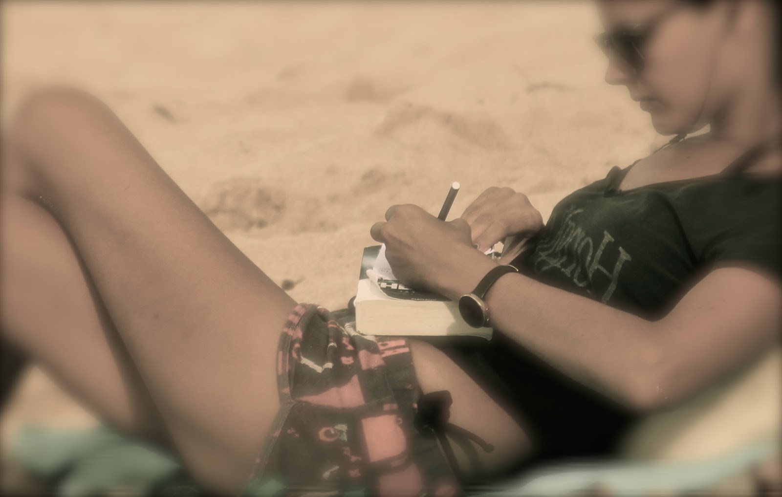 I am an old woman sitting on the beach