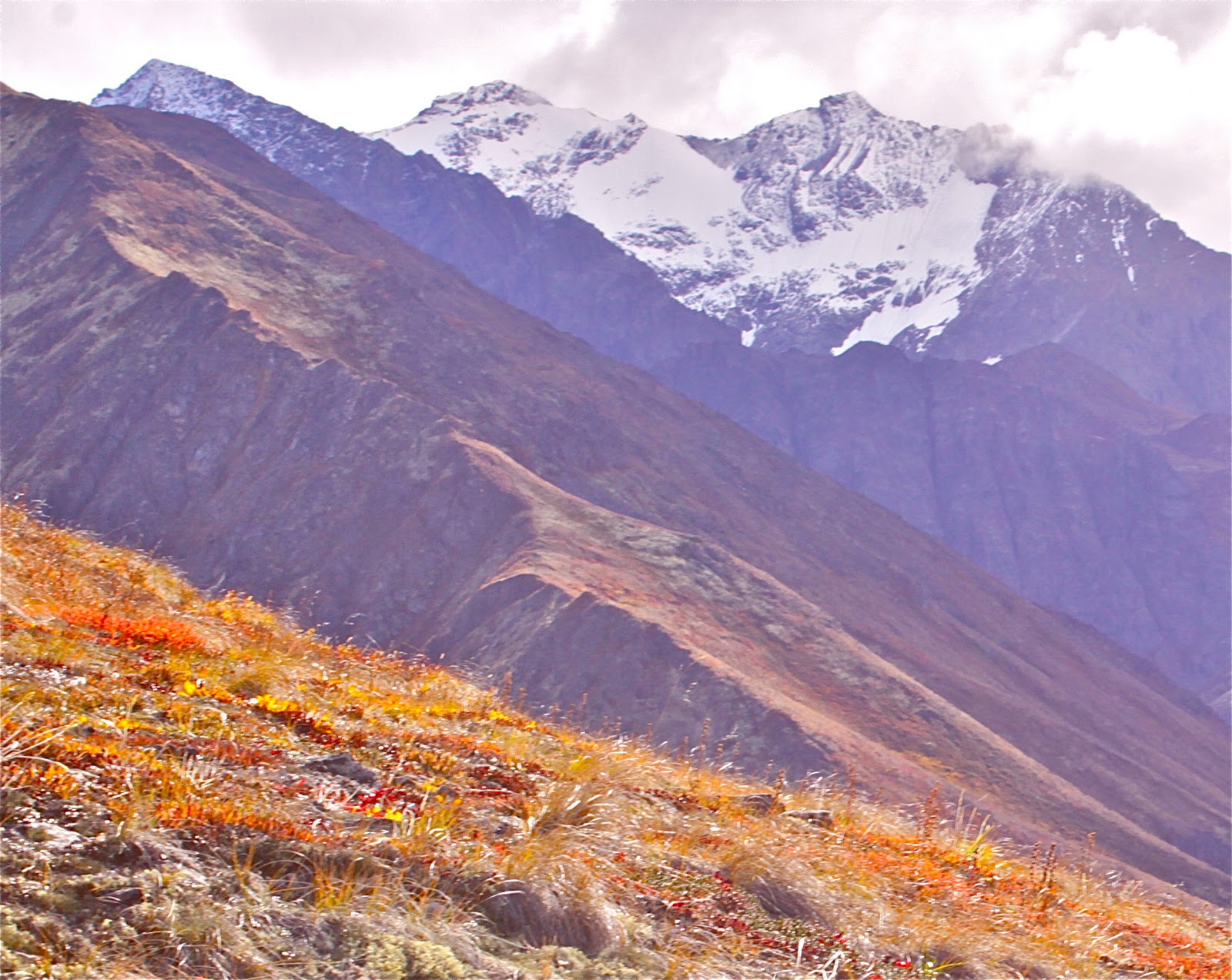 Every year when the colors change and the trees turn to flame, I think of this quote by George Eliot. We hiked the south side of the North Fork, Eagle River. The orange and browns of the tundra, white lichen spotting the ground, black rock faces towering over hanging valleys, the moss berries under our feet, a mama moose and her offspring…kept us in a state of lasting awe. Autumn, the golden enchantment. Watching hawks ride the thermals, catching the warmer columns of air to lift them up without winging.