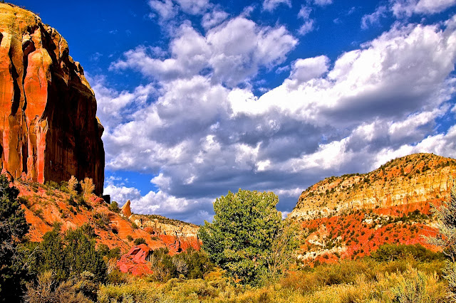 The colors are just starting to take a turn here in Abiquiu, New Mexico. I imagine what it would be like to fly, floating lazily on updrafts while viewing the sumptuous turning of foliage to the robust colors of yellow and orange and red. From the east coast, through middle America, the southwest and then north to Alaska. Non-stop color.