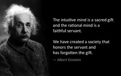 The definition of intuition is this: The ability to acquire knowledge without the use of reason. The word comes from the Latin word “intueri”, which is often roughly translated as meaning “to look inside” or to “contemplate.” Intuition provides us with beliefs we cannot necessarily justify, and is popularly associated with the “right brain” where the origin of aesthetic abilities lie. Some scientists even contend that intuition is associated with innovation in scientific discovery. Einstein believed in it: “intuition is grounded primarily in the feeling of the heart–in its receptivity and its tendency to move outward. It depends on a deep caring and receptivity that pushes one to go beyond what is currently known…”