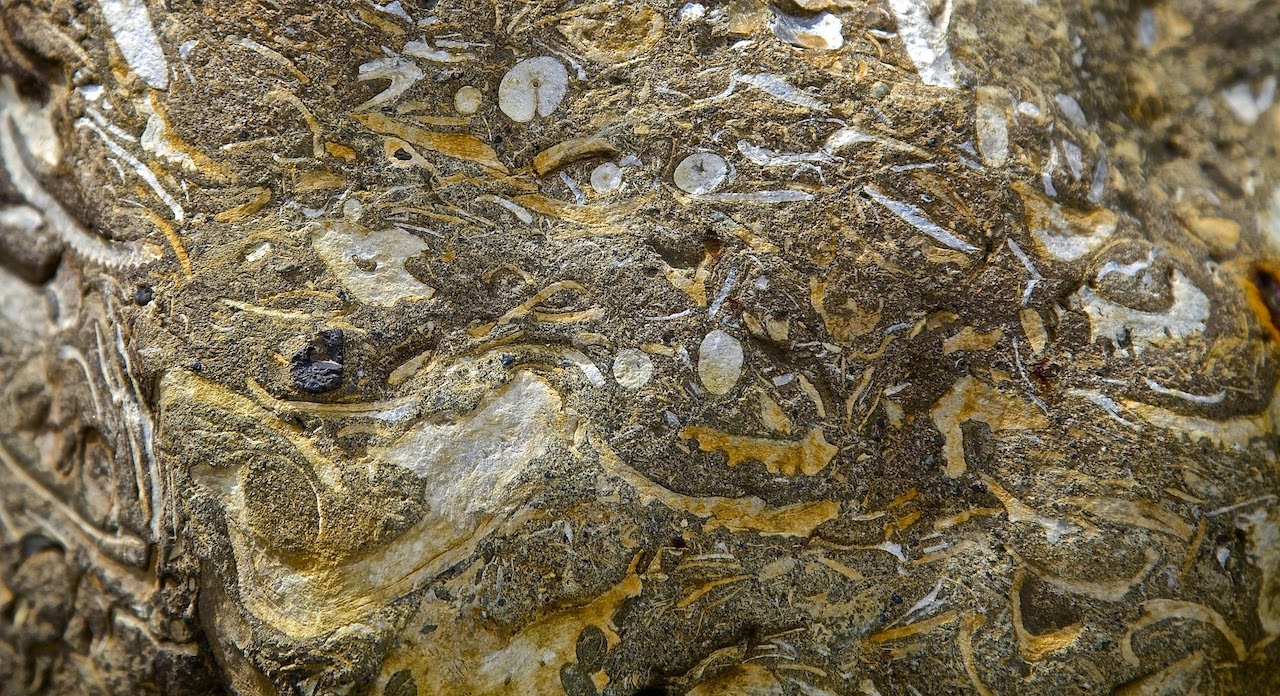 We were searching for prehistoric marine life that lay directly beneath our feet. Here, in the green-covered mountains, we were looking for ancient sea life, as it were.