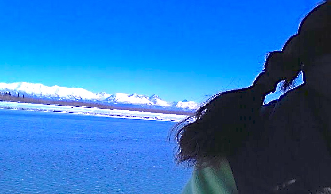 Far off. In a field, I am running toward a river. My dog flailing at my side. Camera slung around my neck; snow crunching under my boots, patches of sheer delicate ice flattened with each footfall.