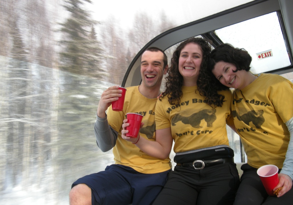 Every year at Spring Equinox, the Alaska Railroad loads up skiers for the annual trip to Curry, an outpost 22 miles north of Talkeetna, for a day of snowshoeing and skiing. What to do on the long train ride from Anchorage that got us out of bed at such an un-godly hour??