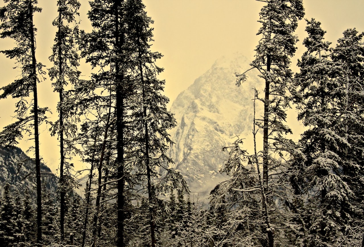 After my excitement and joy wore off, I took this last photo, on my way out of the woods, a little sepia added to turn that black and white scene on its head a bit, soften it, render it a friend, not foe.
